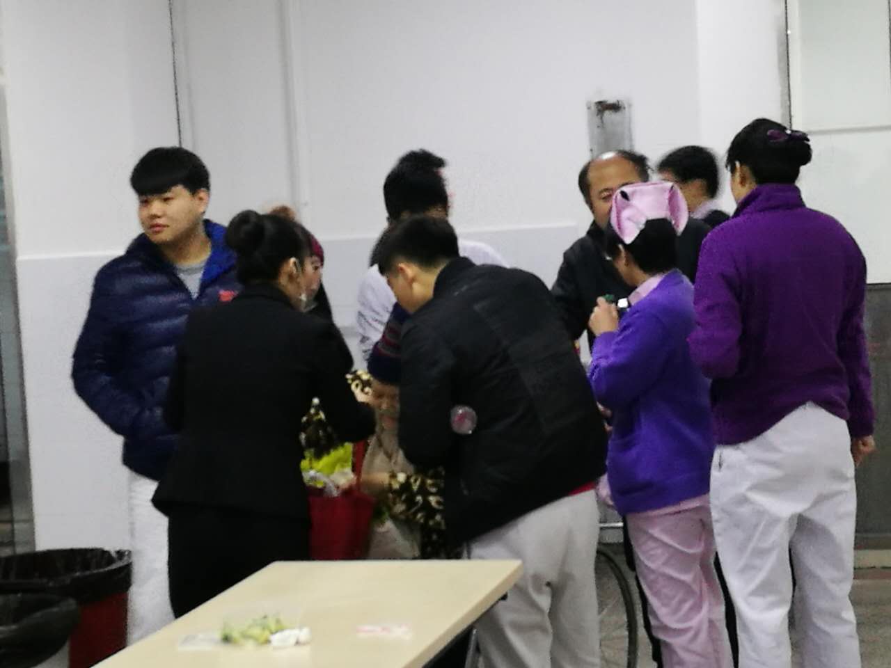 1月18日中午12点,交完班的同事们正准备去吃饭,“叮铃铃” 急诊科的电话响起,“您好,急诊科”郭卫玲护士接起电话说道,“您好,刚才食堂有一位老人突然晕倒,现在已清醒,请您科速来食堂抢救!”,放下电话,郭卫玲护士马上跑去抢救室并同时呼喊赵丽娜护士“丽娜,推上轮椅,我准备急救药品和氧气筒,马上跟我去食堂,有位老人晕倒了”,带齐用物后,两位护士以最快的速度跑去了食堂。