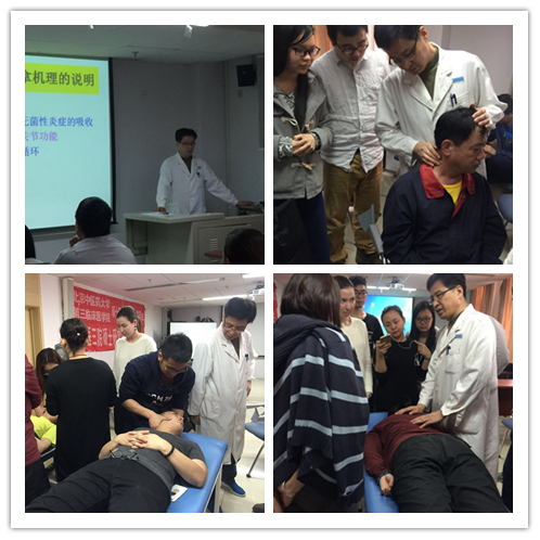 李俊海老师首先以幻灯图片形式系统地介绍了清宫正骨的手法,内容丰富涵盖基本手法、分部手法、点穴疗法等,详细的讲述每种手法的定义、操作要领及注意事项,其基本手法操作简便、实用,既可单独使用,也可组合使用。随后将基本手法按照颈项部、胸部、腰背部的解剖部位组合成套路,分别示范其操作要领及注意事项;并“手把手”的指导同学们对颈椎、胸椎、腰椎进行清宫正骨手法的练习。课堂上同学们积极练习,与李老师热烈讨论,纷纷表示此次培训初步了解了“清宫正骨轻巧柔和,使患者不知其苦”的神奇之处,开阔了对骨科疾病的整体辨证思维、治疗方法的新视野,提高了同学们对中医骨科学的学习兴趣。