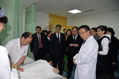 2015年3月24日上午,土库曼斯坦国立医科大学代表团等一行5人来我院参观。刘金民院长、杨晋翔书记、纪委刘钊书记、王庆甫、赵海滨、王国华、徐峰副院长等院领导一起陪同。