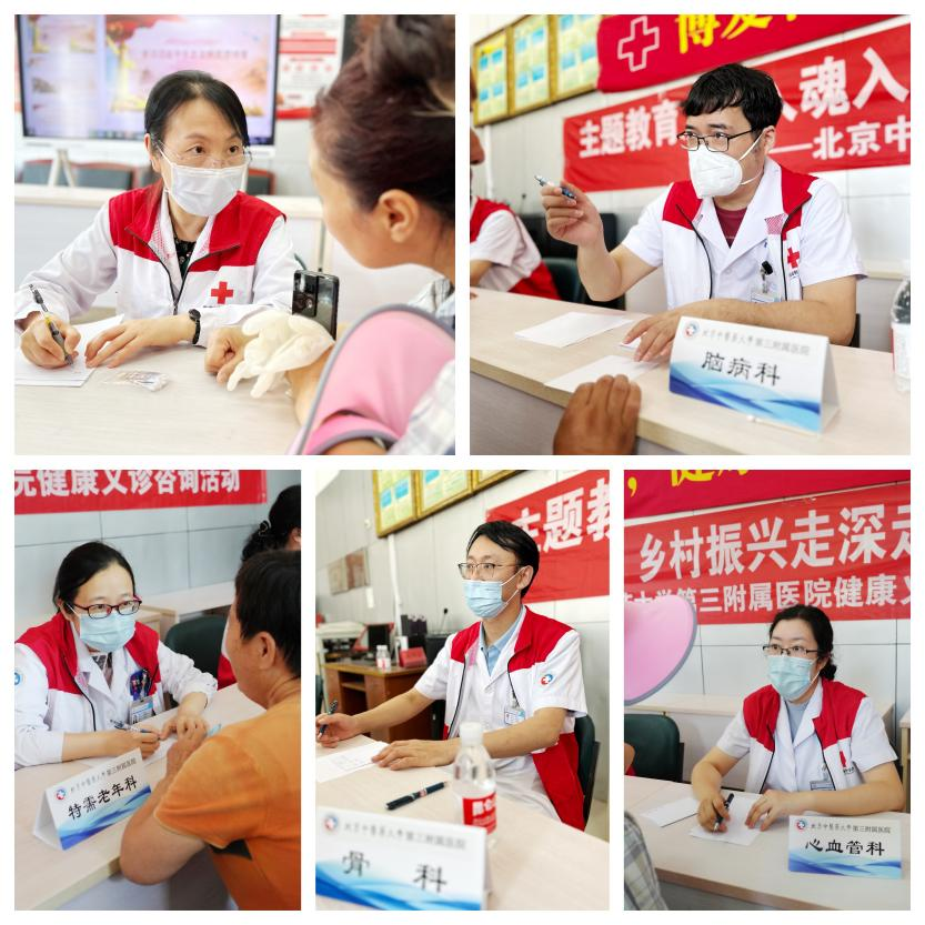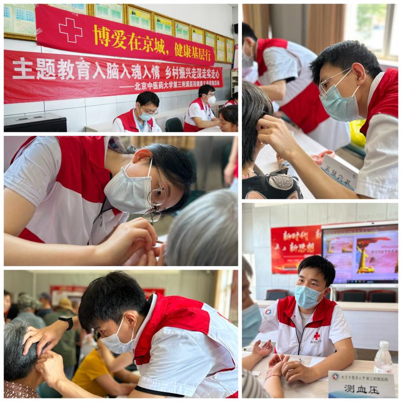 为了进一步学习贯彻习近平新时代中国特色社会主义思想,把乡村振兴落到实处,推进城乡对口支援工作。2023年6月13-14日,北京中医药大学第三附属医院联合北京市红十字会,到怀柔区渤海镇开展了“主题教育入脑入魂入情,乡村振兴走深走实走心”健康义诊咨询活动。我院由徐峰副院长带队,带领由急诊科崔艳超、手足外科潘旭月、心血管科刘欣、老年病科朱明瑾、眼科张雪倩、护理部杜云、研究生罗艳超、陈喆、刘珂、社工部刘育函主任、战淼组成的团队,在我院城乡对口支援单位怀柔渤海镇卫生院协助下,到渤海镇区域内的六渡河村、北沟村和辛营村三个村开展基层义诊活动,为村民们开展了健康咨询、测血压、测血糖、耳穴贴压、超声等项目。