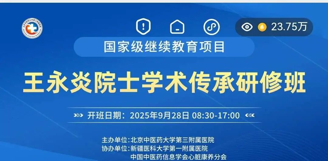 本次研修班线上线下观看达23万余人次,受到学员的赞誉,获赞33万;本次研修班的成功举办,有助于弘扬王永炎院士治学精神,传承与推广王永炎院士学术精华,提升中医药创新、转化与服务能力。