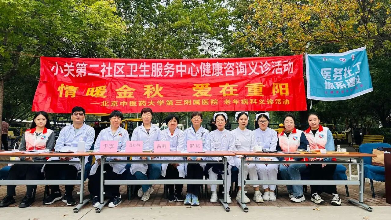 金风送爽,丹桂飘香。2025年10月15日上午,北京中医药大学第三附属医院老年病科医护人员,在科主任罗斌教授、护士长韩柳主管护师的带领下,联合护理部医务社工小组,赴小关第二社区卫生服务中心(中灿苑)举办“情暖金秋 爱在重阳”主题义诊活动。作为国家中医优势专科、北京市“十四五”中医药重点专科,老年病科将优质医疗资源直接送达银发族身边,以专业与温情共绘金秋最美底色。