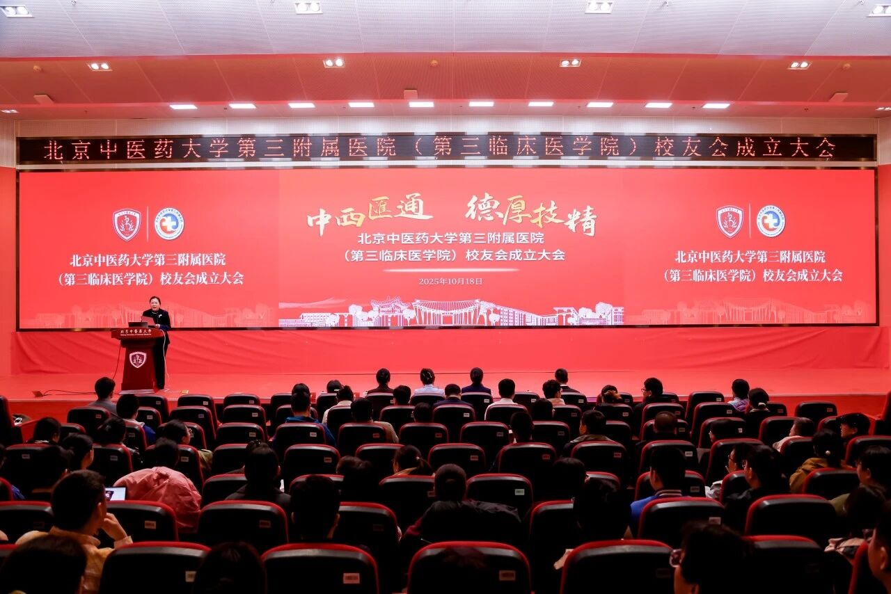 2025年10月18日下午,北京中医药大学第三附属医院(第三临床医学院)校友会成立大会在良乡校区西院综合楼一层报告厅召开。大学副校长丁霞、大学校友会副秘书长宋萌,北中医三院党委书记王家红、副书记闫英、副院长徐峰、副院长徐佳、总会计师罗永发出席成立大会。来自全国各地的北中医三院校友们相聚于此,共同见证医院校友会的成立。大会由副院长徐峰主持。