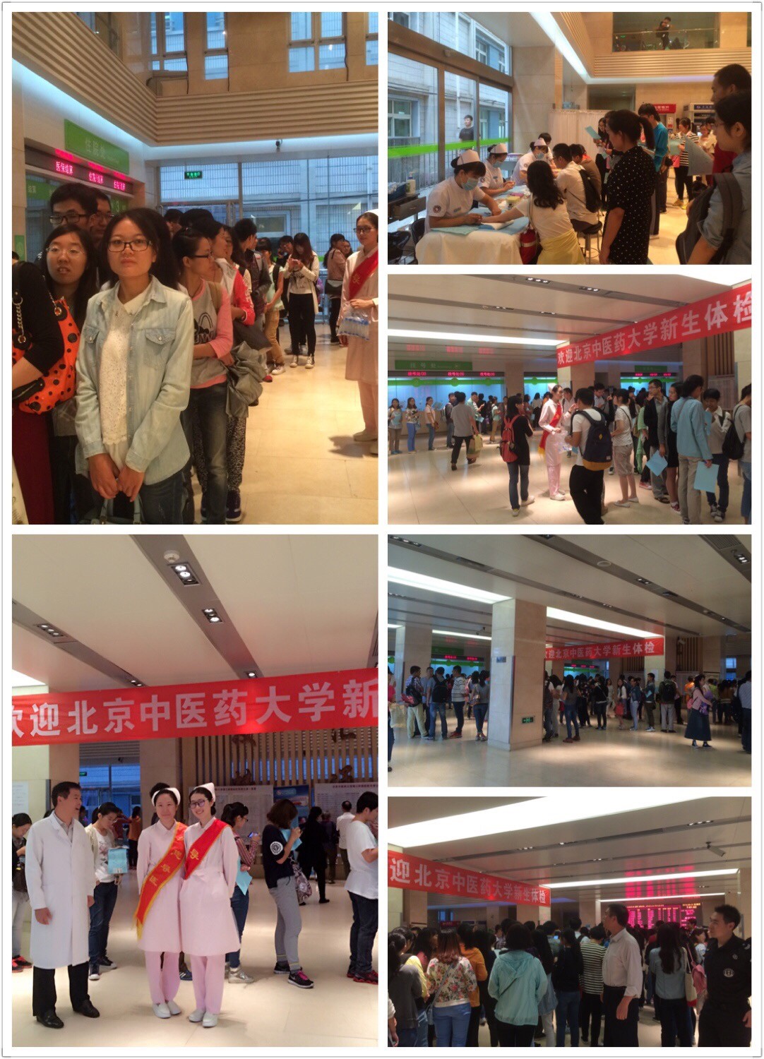因体检人数多,场地有限,为保障安全,发放体检表、抽血在门诊一楼大厅,拍摄胸片在地下一层放射科进行,其余检查均在体检中心进行。为防止混乱,护理部帮助我们安排了大量的护士连同保卫科保安在放射科、体检中心维持秩序;为保证学生健康,我们反复提醒学生抽完血后及时去吃早餐。