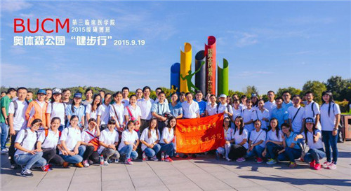 9月19日,晴朗湛蓝的高空万里无云,在这样一个清新、美丽的日子,举办奥林匹克森林公园健步行活动大家都非常激动。早上八点半第三附属医院的师生们准时到达奥林匹克森林公园南门,参加迎接新生 “健步行”5km活动。参加今天活动的有王庆甫副院长、教育处副处长赵永烈,2015级研究生班班主任张进宏老师和导师息金波、陈兆军、李小黎、徐国梅老师以及2015级全体同学。