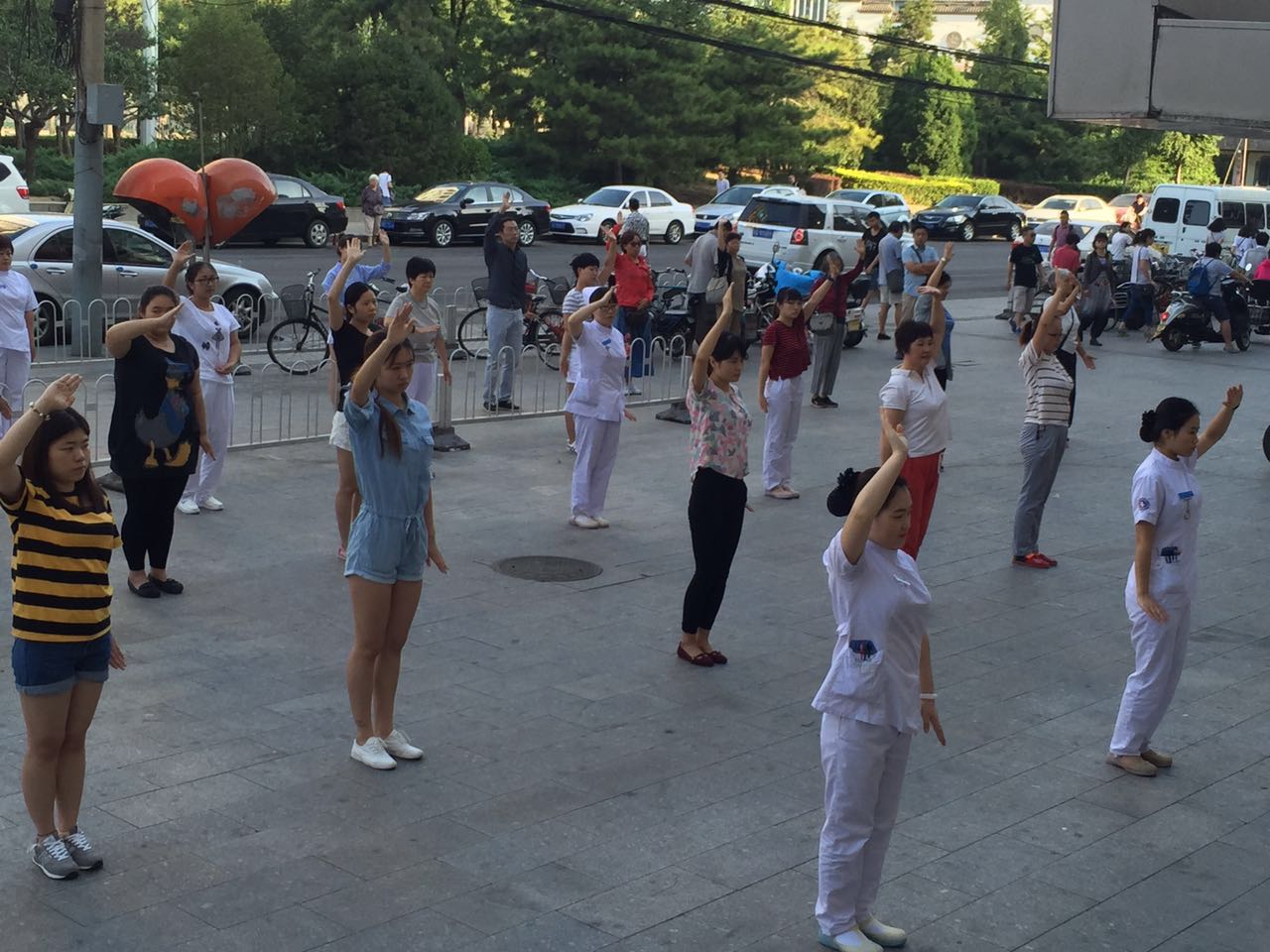 在活动周期间,医院护理部提出“服务百姓周,健康伴您行”的理念,首先在医院门诊楼前开展了八段锦教学,来自周边社区的百姓共计60余人参与学习锻炼,作为北京市中医护理能力提升办公室负责人,护理部主任唐玲表示,坚持把八段锦群众教学工作长态化、机制化。