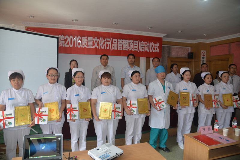 2016年9月27日医院隆重召开2016质量文化行(品管圈项目)启动仪式。北京市中医管理局禹震副局长、祝静副调研员,北京中医药大学医疗管理处周春宇副处长应邀出席了启动仪式。仪式由赵海滨副院长主持,杨晋翔书记代表刘金民院长及领导班子对这项工作给予了充分肯定,并表态全力支持。禹震副局长及杨晋翔书记共同为航空总医院高艳主任颁发了聘书,聘请高艳主任作为医院品管圈项目顾问。之后禹震副局长、周春宇副处长、高艳主任、杨晋翔书记、赵海滨副院长、王国华副院长及裴晓华副书记等领导为三附院20个品管圈项目小组颁发了圈徽及赠予学习书籍。禹震副局长对我院开展这项活动给予了高度评价,并对品管圈项目工作作出重要指示:指出品管圈项目是探索医疗管理长效机制的重要手段,应用质量管理工具解决质量问题是质量持续改进工作的重要内容之一。强化各类质量管理方法及工具的应用,是医院质量管理的有力推手。通过落实品管圈活动,可以持续改善医疗管理和服务质量水平,营造医疗团队合作及学习成长的环境,发挥医护人员潜能,培养医疗管理人才,建立医疗质量提升改善活动的标杆,促进医疗团队重视质量活动的进行,有效防范风险,消除医疗安全隐患,更好地保障患者安全,全面提升医疗质量。