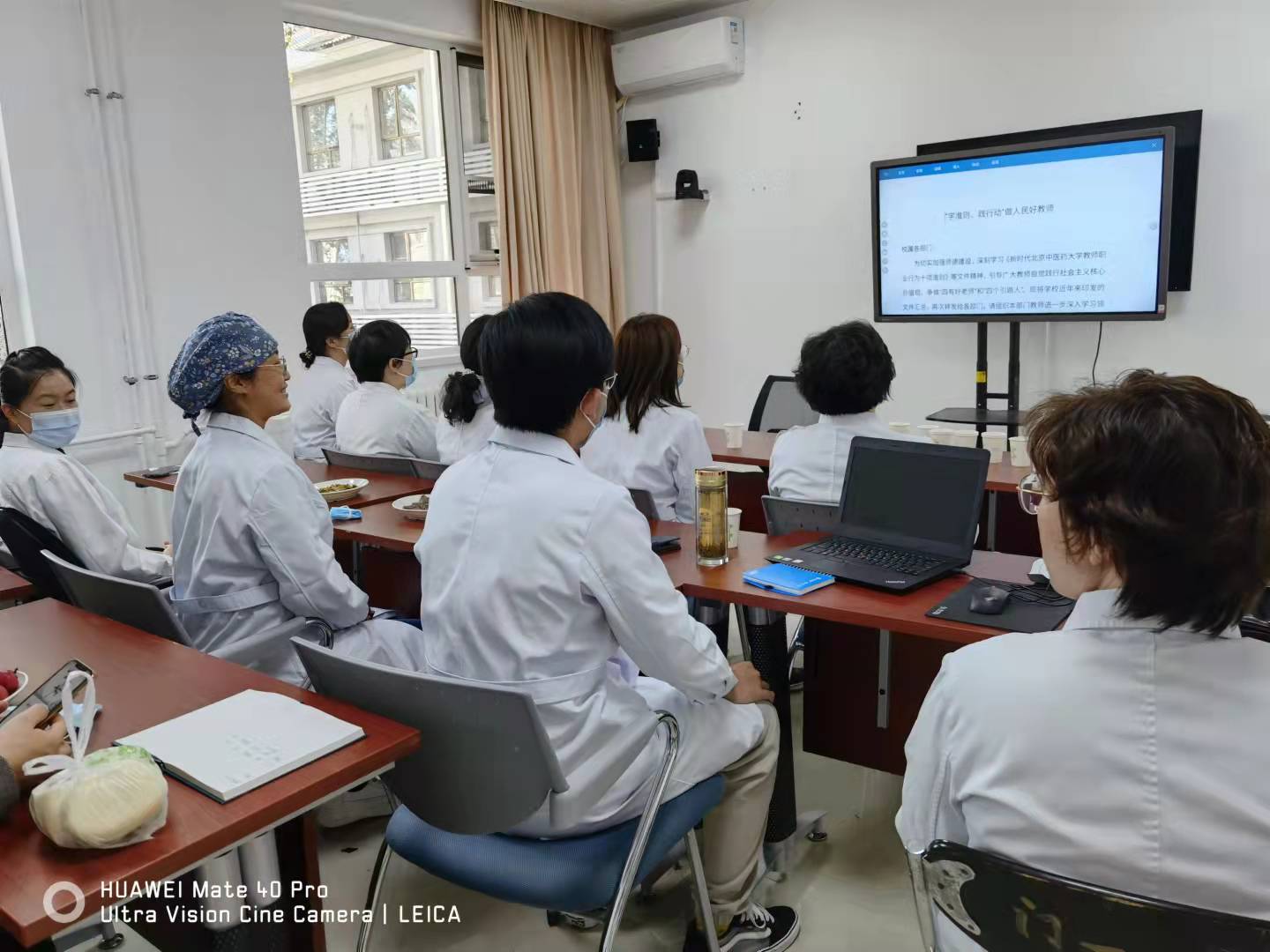 西医内科教研室于2021年10月20日中午,大家利用午间休息时间在住院楼三楼示教室在西医教研室李伟主任的带领下集体认真学习了关于师德培训的相关文件及内容。各位老师集体学习了《教师思想政治工作建设方案》、《北京中医药大学师德考核实施办法(试行)》、《北京中医药大学教师师德失范行为处理实施细则(试行)》、《新时代北京中医药大学教师职业行为十项准则》(试行)、《北京中医药大学师德“一票否决制”实施细则(试行)》、《北京中医药大学教师职业道德规范(试行)》相关内容。各位老师通过学习,对“学准则、践行动”做人民好教师有了更加深刻的认识,对提升教师思想政治素质和职业道德水平,强化立德树人,提高人才培养质量,构建“大教师、大思政”教育工作格局起到了很大作用。活动中各位老师学习态度认真,通过学习,老师撰写心得体会,增加了各位老师对“大教师、大思政”进一步认识。最后李伟主任对师德培训工作进行了认真总结,使各位西内教研室老师收获颇丰。
