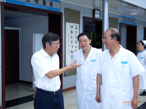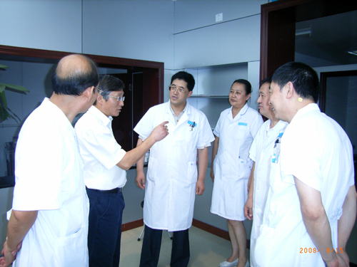 2008年8月15日上午,烈日炎炎。大学吴建伟书记在徐孝副校长、王健萍处长、邬国强处长的陪同下,来到三附院视察。视察中,吴书记对医院的快速发展给予了充分肯定,对医院在上半年取得北京市首家“三级中西医结合医院建设单位”资格表示祝贺,对奥运期间辛勤工作的全体职工表示慰问和感谢!