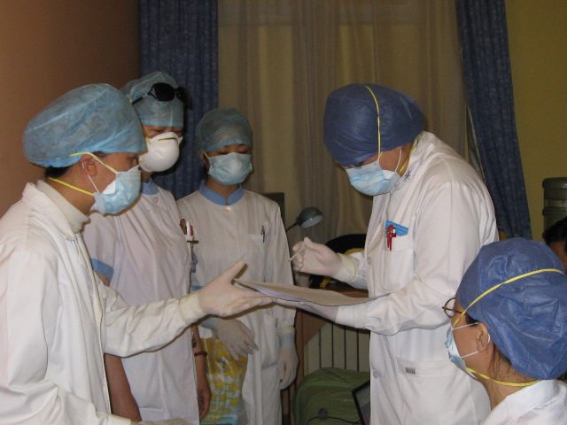 5月12日23时16分,医院接到朝阳区卫生局、朝阳区疾控中心(CDC)通知,内地第二名甲型H1N1流感疑似病人(山东患者)曾入住医院附近酒店,要求立即到现场进行防控工作。接到通知后,医院立即启动甲型H1N1流感防控应急预案,社区中心原丽主任第一时间到达该酒店,立即开始了医学观察和排查工作,连续工作至第二天中午。5月13日清晨副院长兼社区中心主任、保健科主任及社区中心共15名医护人员赶赴现场,协助市疾控中心开始了流调排查工作。疫情就是命令,当疾控中心根据疫情,需要医务人员留驻酒店承担对近100名入住酒店人员进行为期七天的医学观察时,我院十几位同志纷纷主动请战,面对严峻形势毫不退缩,展现了医务工作者高度的责任感和使命感。