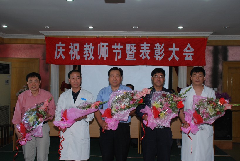 王庆甫副院长宣读了第三临床医学院关于“表彰2008——2009度优秀教师、优秀教育工作者的决定”并希望全院的教职工向受到表彰的同志们学习,尽职尽责,努力做好教学工作,为培养优秀医学人才做出更大的贡献,打造医院优质的教学品牌。院领导们向受表彰的优秀教师、优秀教育工作者以及优秀带教老师献花颁发荣誉证书。随后,优秀教师代表张凯松、张鸿泰及李春峰三位老师分别做了发言并表达了个人以及三附院全体教师的努力方向和奋斗目标。