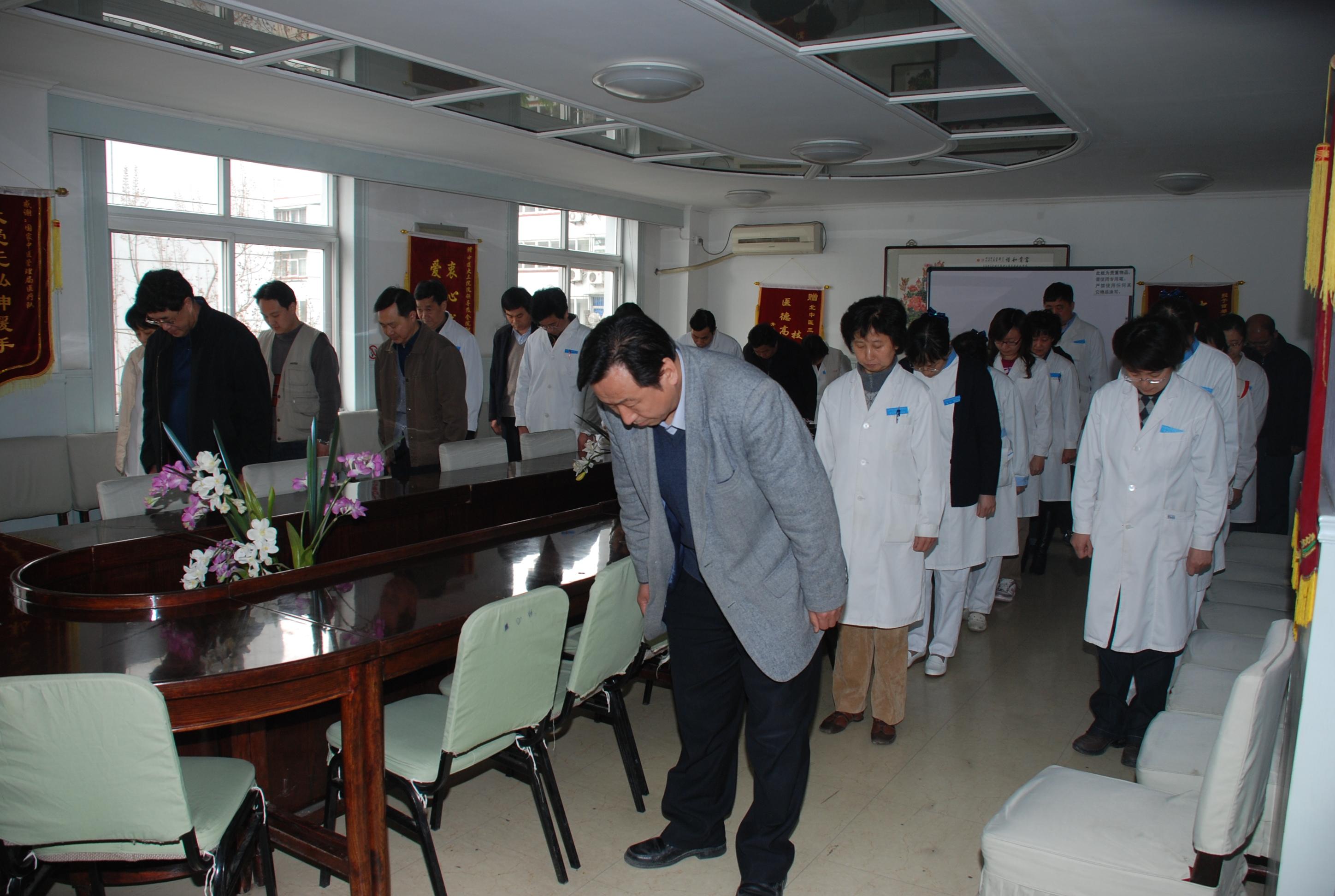 今天上午10点,第三附属医院院党委组织全院职工为玉树地震灾区死难同胞默哀三分钟。参加默哀的不仅有医院的党政领导,还有各处、科室的党员职工,其中正在开会的杨晋翔书记、唐启盛院长参加了组织的集体默哀的队伍中。