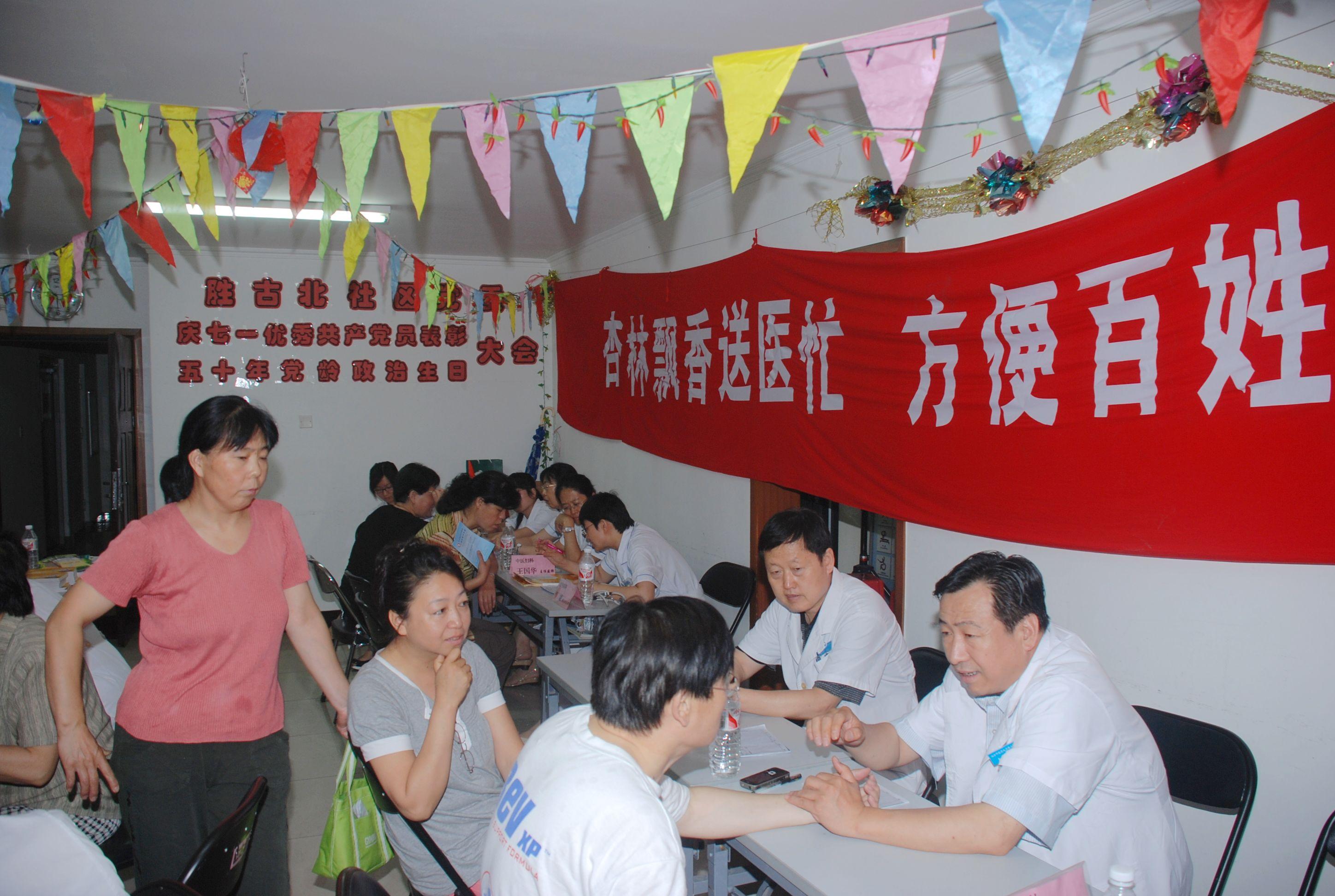 “杏林飘香”志愿者进社区活动开展三年多来,志愿者们定期到这里来义诊和义务讲课,深受百姓的欢迎。在志愿者们的帮助下,该社区被评为“北京市健康社区”。