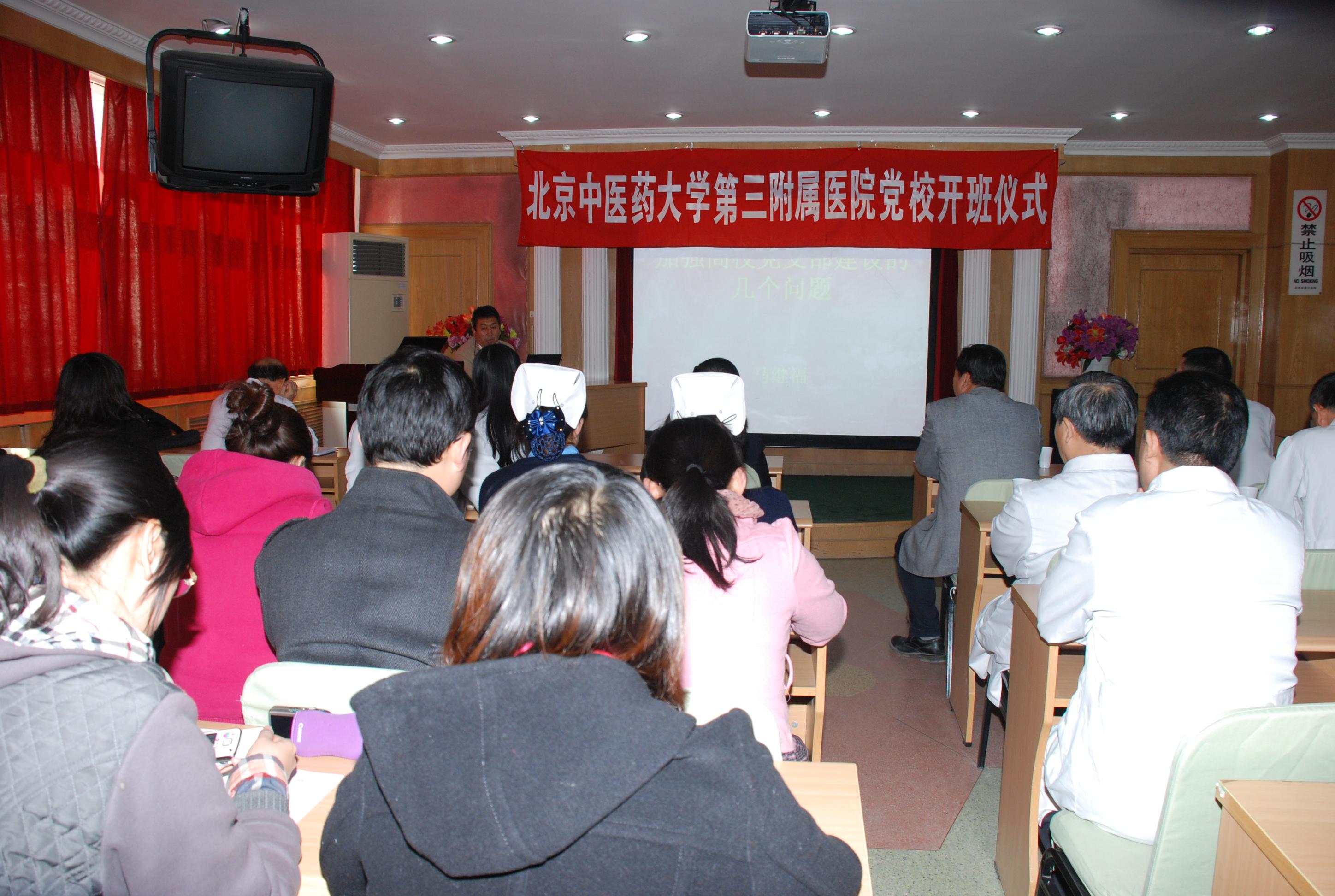 11月9日下午,第三附属医院举办了第一期 2009-2010级研究生党校入党积极分子培训班。入党积极分子、医院党支部书记、支部委员共计100余人参加了此次培训。北京中医药大学党委常委、组织部部长马继福与医院党委书记杨晋翔分别作了主题为“加强高校党支部建设的几个问题”以及“加强医院文化建设、构建和谐医院”的讲座。党校由院党委书记杨晋翔同志主持。