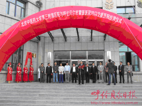 呼仑贝尔日报讯(记者韩永刚)6月8日,市蒙医医院与北京中医药大学第三附属医院举行对口支援医院挂牌仪式。市人大副主任艳东、市政协副主席达喜扎布出席。