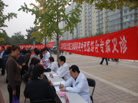 2011年10月9日上午,第三附属医院与胜古北社区联合在朝阳区北土城元大都公园举办了以“知晓你的血压和控制目标”为主题的大型咨询健康公益活动。