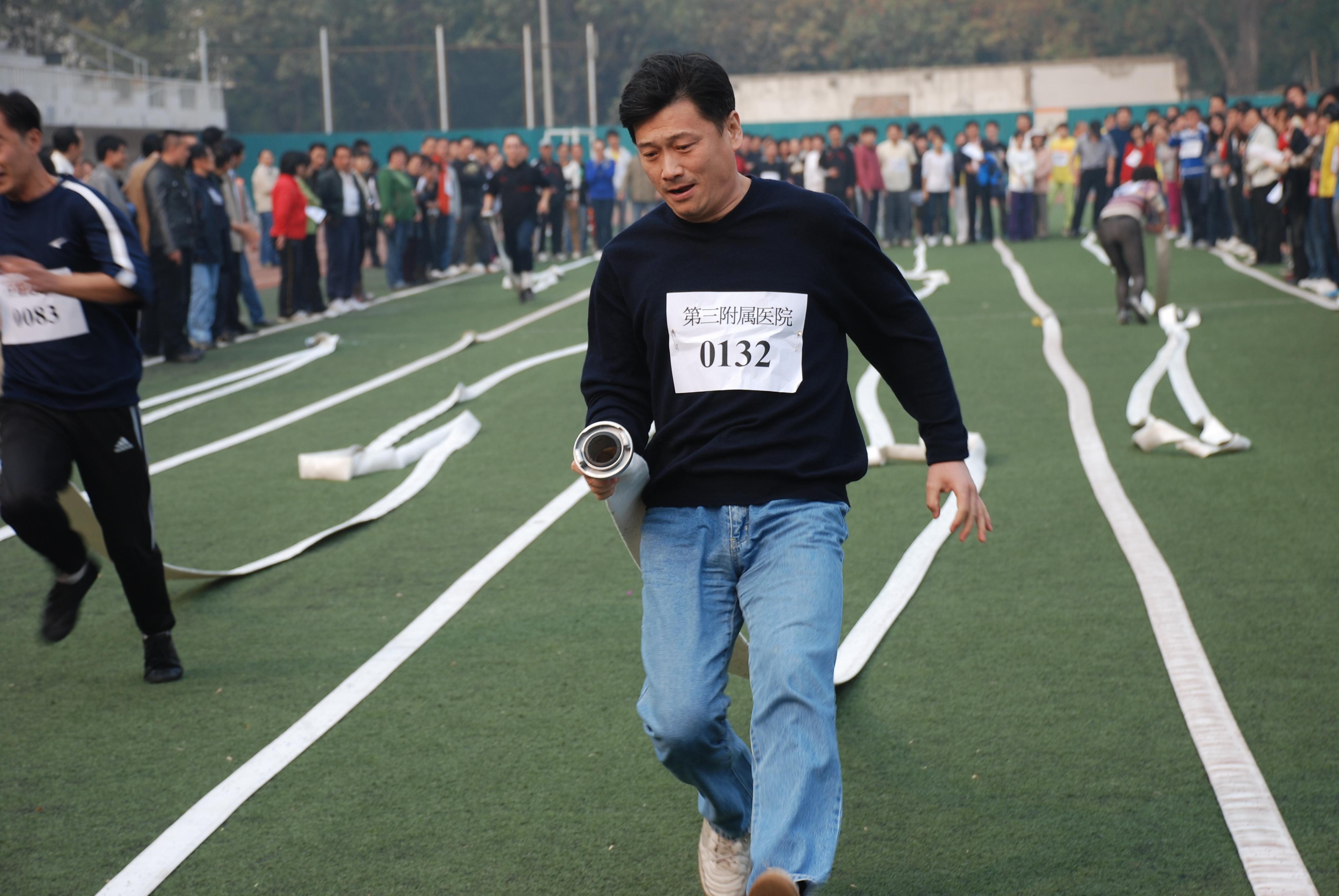 第三附属医院与来自大学直属的12个单位的300多名运动员参加了第二届教职工消防运动会项目的竞赛。比赛分为水龙带连接接力赛、消防桶盛水接力赛、灭火器持重接力赛、两人三足跑救人接力赛共计4个分类项目的比赛。经过激烈的角逐,第三附属医院参赛们选手们以顽强拼搏的精神、默契的配合表现出了出色的水平。最终以最高分获得了本届消防运动会比赛的冠军和最佳组织奖。