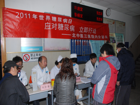 2010年11月10日,我院小关卫生服务中心与小关办事处,共同开展了“应对糖尿病立即行动”健康知识讲座及义诊咨询活动。这次活动内容有:“防治糖尿病并发症,健康生活到百年”、“糖友护肾=护本”讲座;中医专家咨询义诊、测血压、血糖、腰围、中医埋耳豆等特色项目。