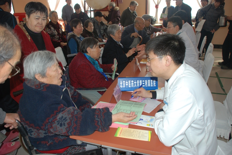 康辉老年公寓是朝阳区首屈一指的大型老年公寓,在院老人1000余人,其中不乏九旬以上的老寿星,而今行动不便,在此安享晚年。第三附属医院医护人员的到来,让他们感到温暖,而到场的每一名医务人员则用自己最真诚的关怀与扎实的专业知识为老人们送去他们需要的健康知识与疾病诊疗、康复指导。同时为每名在院老人免费发放了中医防治流感和防止肿瘤疾病等健康书籍,更是让老人们喜上眉梢、激动不已。活动从早上9:30持续到中午11时,专家们不仅为现场的老人答疑解惑,更是组队前往公寓内探望行动不便、卧床休息的老人,把最全面、仔细的健康服务送到每一老人的身旁。