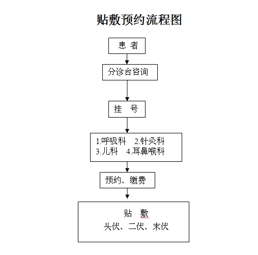 患 者 挂 号 分诊台咨询 1.呼吸科 2.针灸科 3.儿科 4.耳鼻喉科 预约、缴费 贴 敷 头伏、二伏、末伏