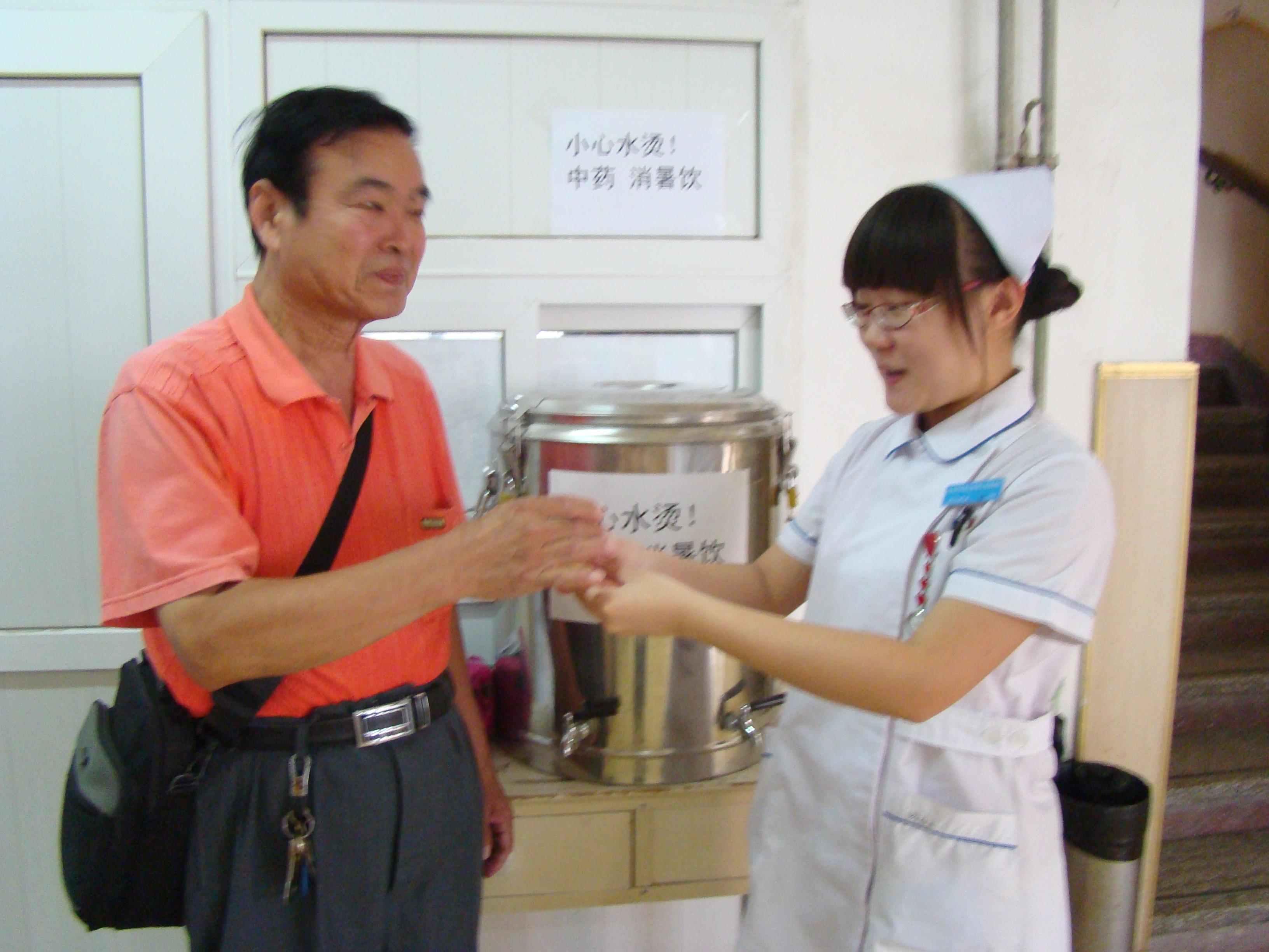 为了贯彻北京市中医局关于提供“防暑饮”服务的通知精神,近日,第三附属医院应对高温天气,除做好医务人员调配和门、急诊工作安排,储备好急救药品外,在人群集中的门诊大厅内,为广大就诊患者准备了免费的防暑降温凉茶。门诊候诊厅特设置了防暑降温、健康度夏的导医咨询服务,还为广大患者推出了免费的防暑降温方剂、防暑降温食疗及编印了高温季节防暑降温的中医健康知识宣传单发放给就诊患者。进行广泛宣传,指导患者和社区居民合理应用中医药防暑。