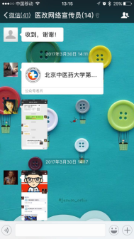 根据北京市卫生计生委以及北京市中医药管理局的要求,我们组建了医改(中医医改)网络宣传员的队伍。为了更好的向大众宣传医改最新政策和措施,特开展了网络宣传员的培训会。在会上明确了医改网络宣传员的职责,要求准确领会医改政策,积极转发市卫生计生委官方微信、官方微博的权威解读,推送我院公众微信号的关于医改的内容,正面发声,传递正能量。收集和反映各方面的意见和建议,做好舆情监控工作。组建了医改网络宣传微信群,方便大家及时交流。