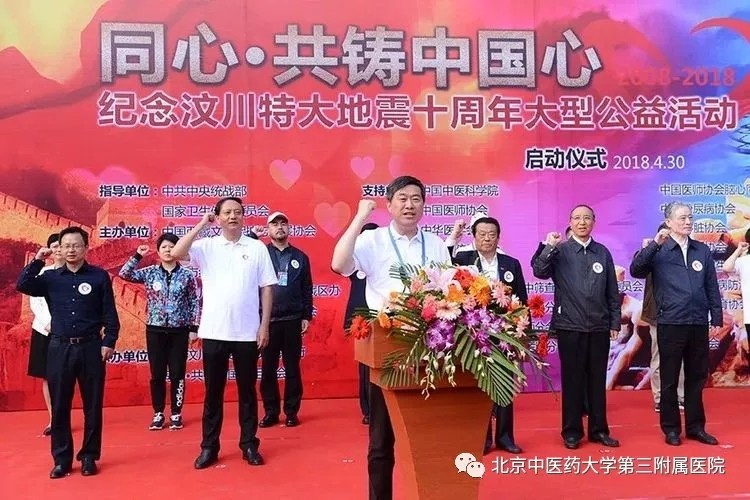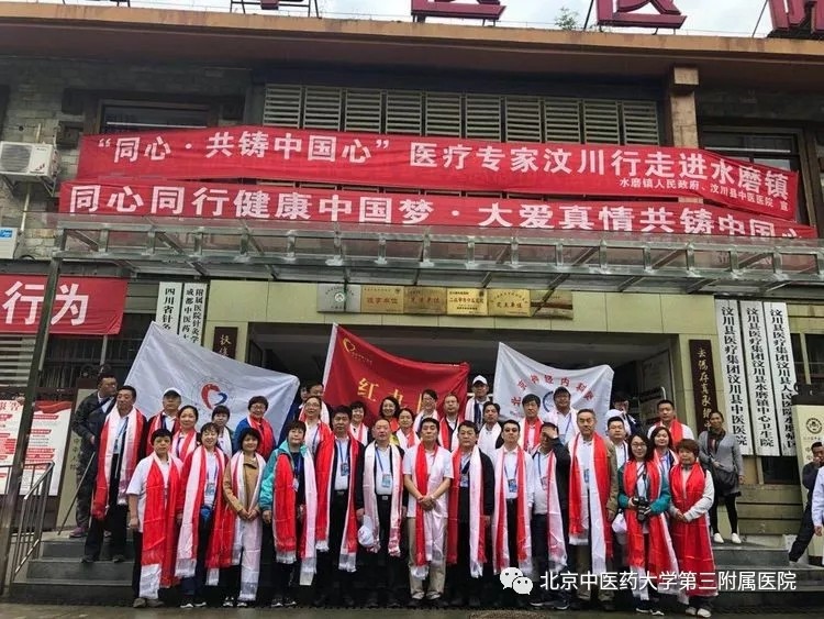 北京中医药大学第三附属医院作为医疗、教学、科研、预防、保健、康复于一体的三级甲等中西医结合医院,是国家中医药管理局重点中西医结合医院建设单位、教育部直属医院,在收到“同心•共铸中国心”组委会邀请后,于2018年4月29日至5月3日,组织了6名医务专家志愿者再次奔赴汶川,由院长王成祥、副院长徐峰带队参加了此次公益活动,随行的医务专家志愿者分别是:社工部处长脑病科专家江涛主任、微创关节科田向东主任、脾胃科王再见主任、针灸科王爱成主任。