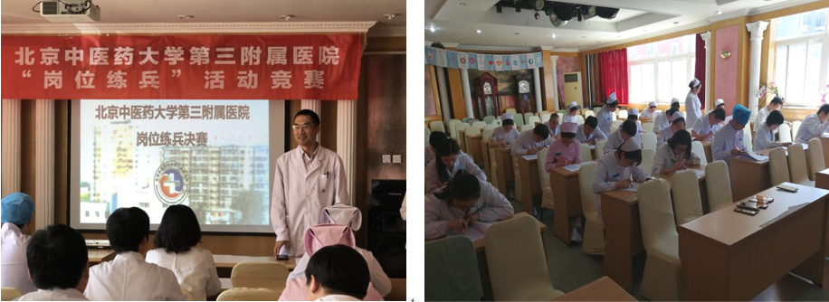 北京中医药大学第三附属医院“医护岗位练兵”活动自2018年3月8日起,经过为期一个月的培训和三轮初赛的激烈角逐,十七组选手中有六组优秀的临床医护队伍脱颖而出,晋级岗位练兵竞赛决赛,分别是:内分泌科、脾胃科、呼吸科、心血管科、急诊科和创伤关节科。