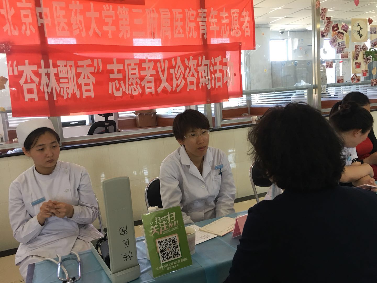 5月4日上午,北京中医药大学第三附属医院团委联合机关党支部、研究生党支部等相关部门共同组织专家义诊团队走进北京中医药大学良乡校区,为全校师生开展健康义诊咨询活动。