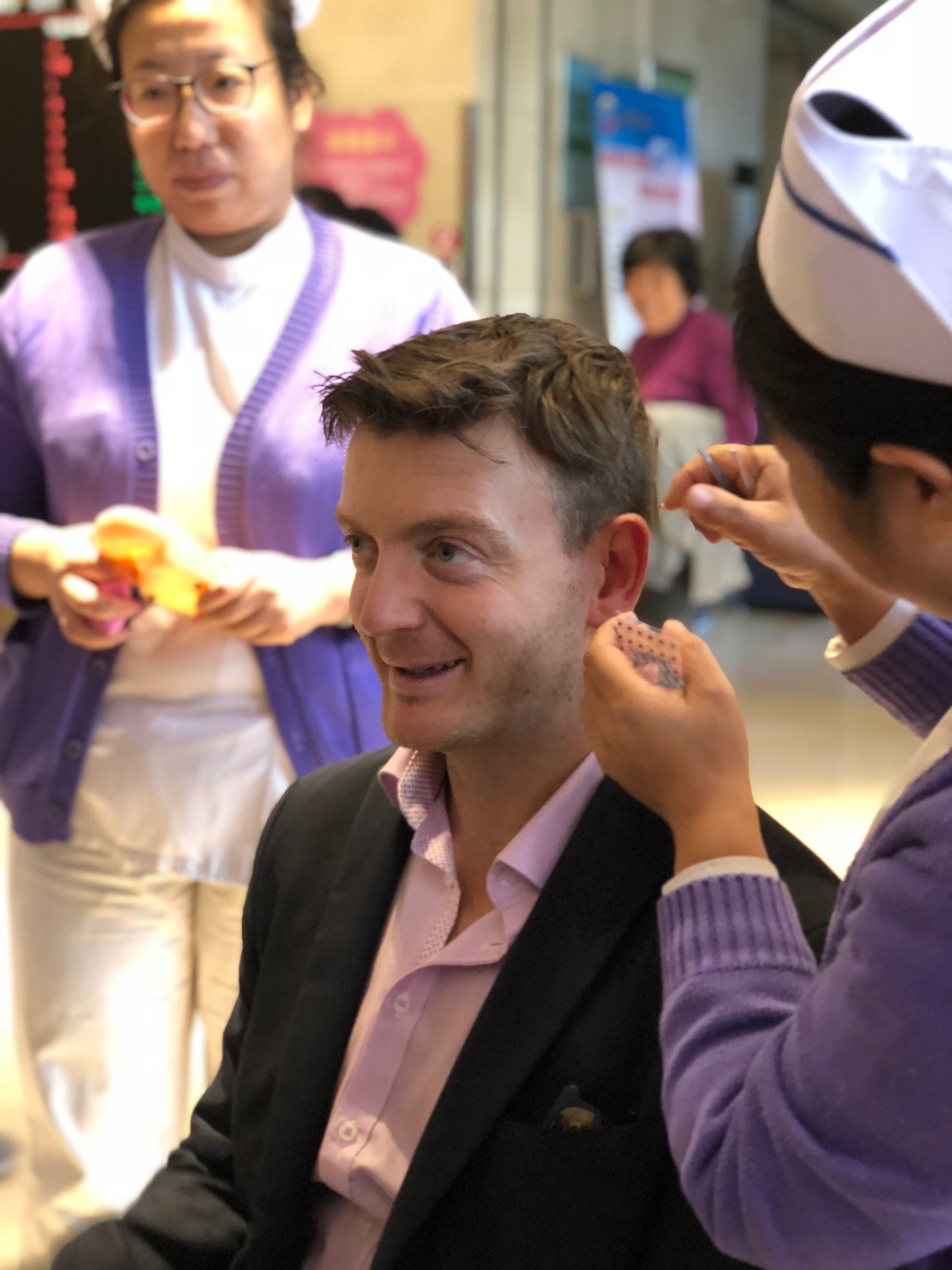 目前该项目已经在我院全面开展,国际志愿者们通过观察、沟通、咨询、体验等多种方式了解我院需求,制定目标及解决方案。10月15日下午,我院院长王成祥,副院长、党委副书记王国华,副院长徐峰及相关科室负责人就项目与国际志愿者们进行了座谈,双方进行了深一步的沟通与交流。随后在副院长徐峰的带领下整体参观了我院门诊楼。在10月17日,恰逢中国传统节日——重阳节,4位国际志愿者参与了我院护理部在门诊大厅举办“九九重阳节 浓浓敬老情”主题护理活动,了解了中国传统中医药文化,并亲身体验中医药服务,也对关爱老年患者方面更有了进一步的认识。