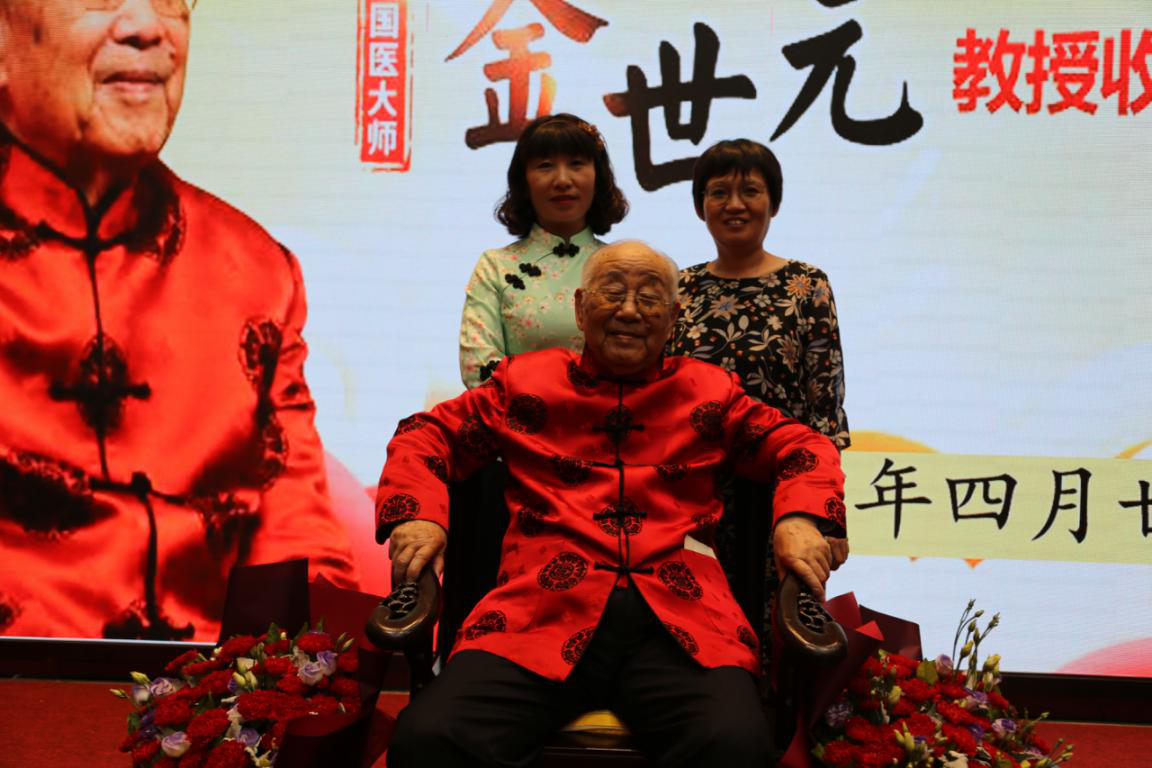 金世元教授是我国首位中药领域的 “国医大师”,是中医药界德高望重的“国药泰斗”。在金老从业的70多年里,一直奋斗在中药行业的第一线,为中医药的传承和发展大声疾呼、呕心沥血。金老品德高尚,治学严谨,中医药学功底深厚,在中药材种植、中药炮制、中药鉴别、中药调剂、中药制剂、中药临床应用等各个领域积累了丰富的实践经验,并建立了自己独特的理论体系。金老将毕生所学毫无保留地著书立说、讲座教学,培养了大批优秀的中药人才,桃李满天下。我院药学部孔祥文主任作为金老的第十三批弟子已经顺利出徒。