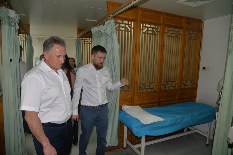 罗曼·伊雷克部长参观了我院针灸科、康复科、推拿科、中药房、口腔科等特色科室,对于我院优雅的就医环境,庞大的医疗专家团队,专业化的特色科室,规范的诊疗程序,罗曼·伊雷克部长表示了极大的认同,特别是对博大精深的中医中药和众多独特的治疗方法,表示出极大的兴趣,罗曼·伊雷克部长更是亲自体验了推拿按摩等中医的传统治疗方法。