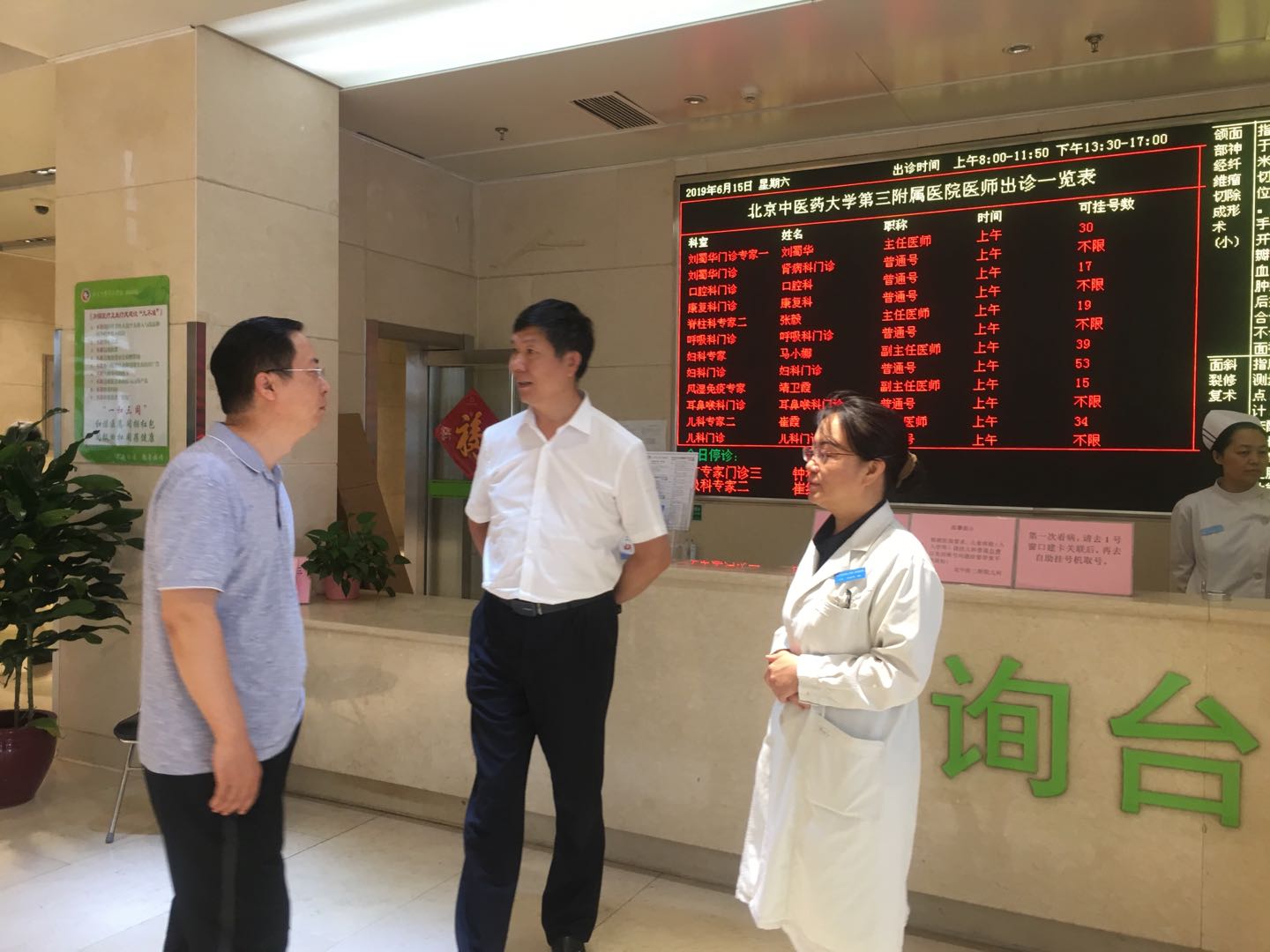 15日下午北京中医药大学王伟副校长来我院了解医耗联动综合改革进展动态,并对加班加点工作的医护人员表示慰问,对我院医耗联动综合改革工作表示肯定。