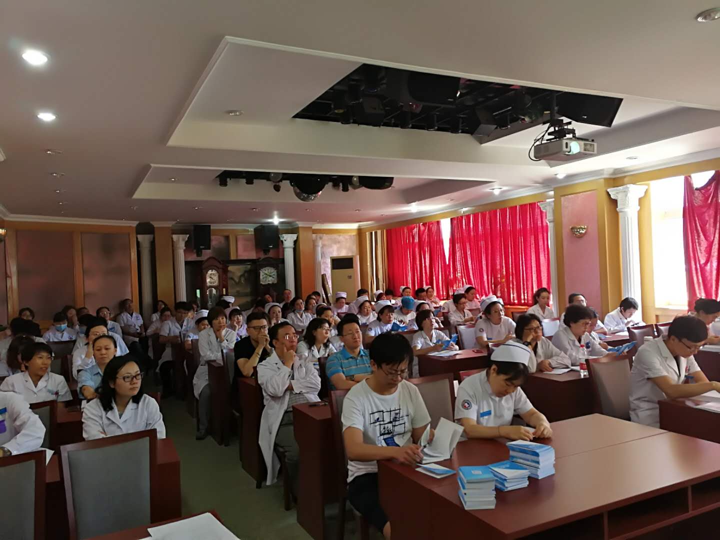 5月27至5月31日分批次组织完成全院医护人员、门诊导医、志愿者、进修生、规培生、后勤、保安、护工等医院所有工作人员培训,培训共计1240余人次。