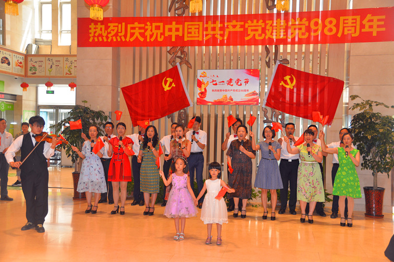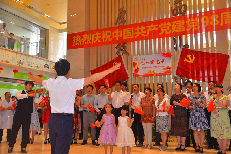 不忘初心、牢记使命!铭记党恩、咏唱真情!为隆重纪念中国共产党建党98周年,我院党委工会在门诊大厅共同举办了红歌联唱"快闪"活动。