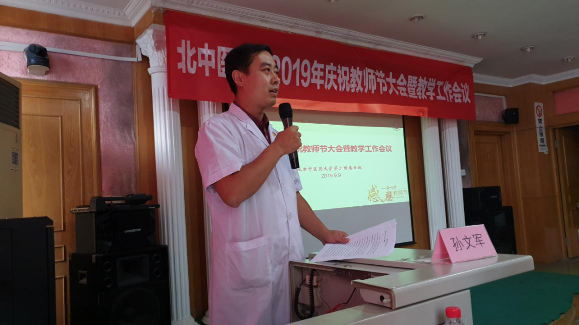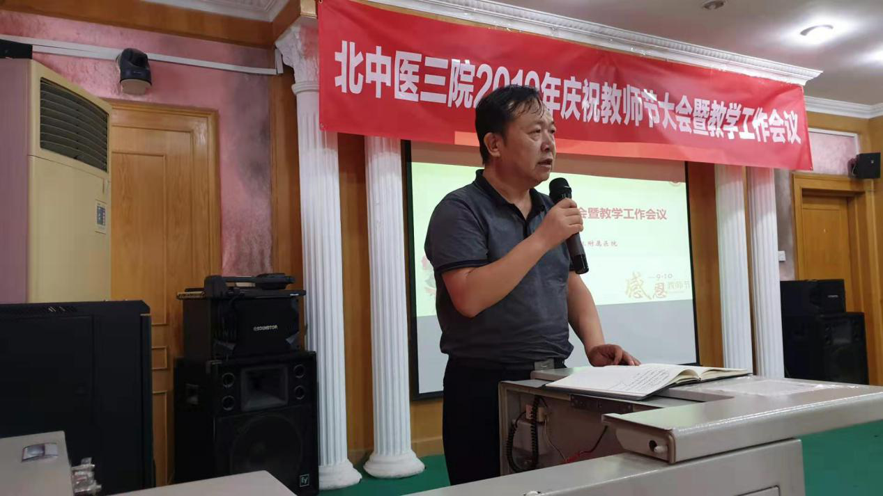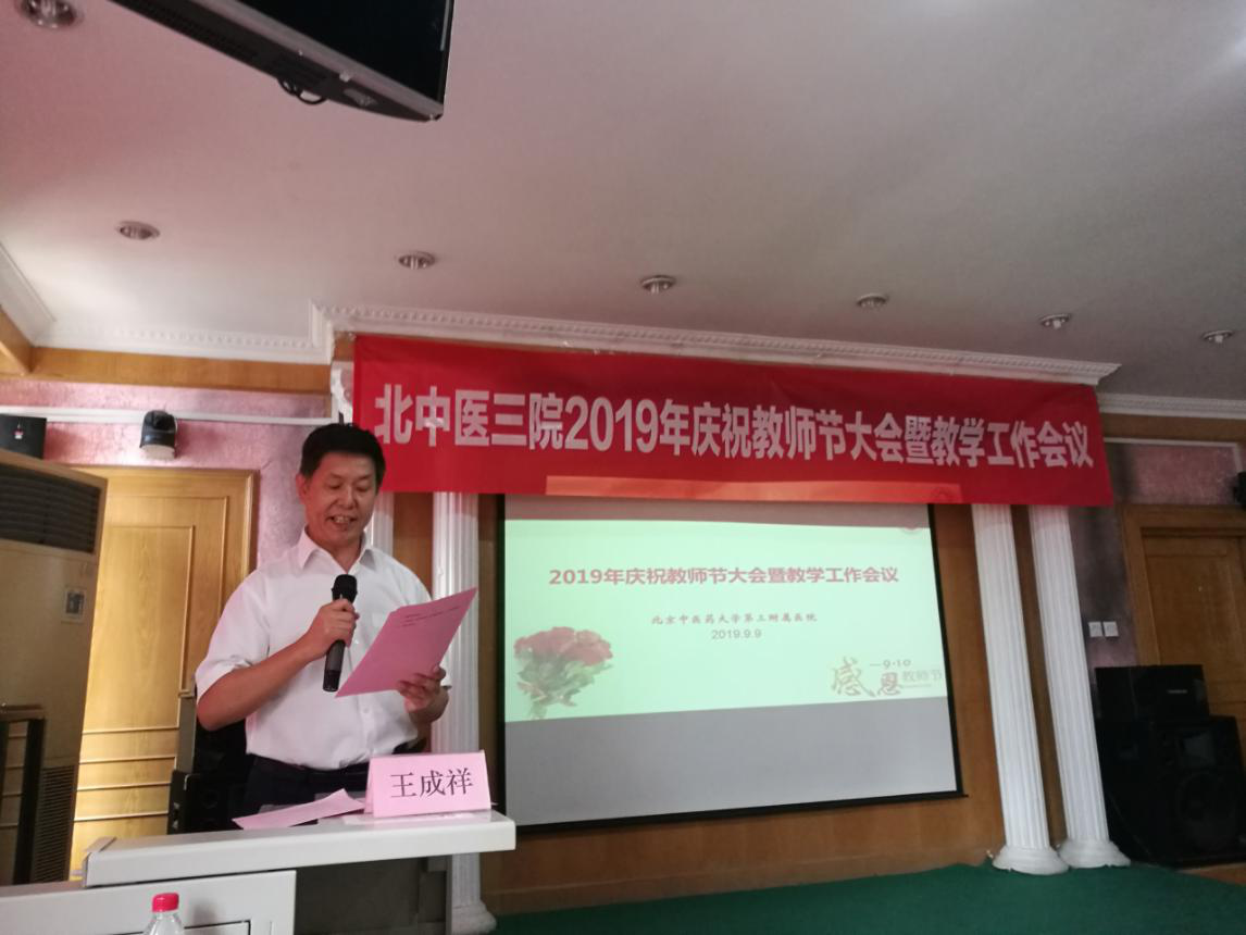首先由王成祥院长致辞,王院长向各位教师致以节日的问候,同时表示民族的复兴与教育事业息息相关,而教育事业中教师是重中之重,我院教师不仅仅肩负教书育人的使命,同时又担负着治病救人的责任,肩上的担子沉重而伟大,希望我院教师能够砥砺前行再创辉煌。
