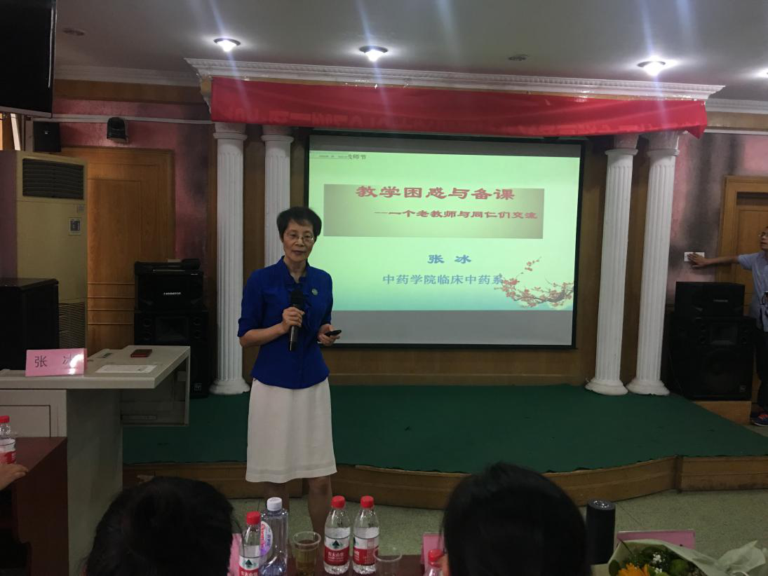 大会最后,我院特别邀请了中药学院张冰教授为各教研室教师做“教学困惑与备课——与中青年教师交流”的教学培训。