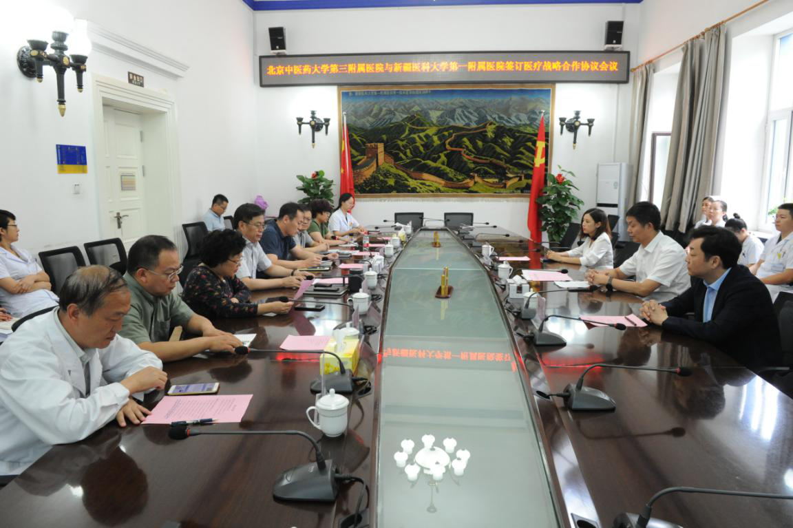北京中医药大学与新疆医科大学是对口支援关系,在双方大学的大力支持下,两家大学附属医院结为战略合作关系,借助双方在中西医方面的优势平台互补,进一步推动医疗技术的提升、重点学科的建设和中医适宜技术的开展。