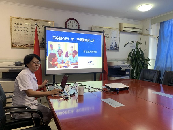 首先,王国华书记做了题为“不忘初心行仁术,牢记使命育人才”的主题党课教育报告。