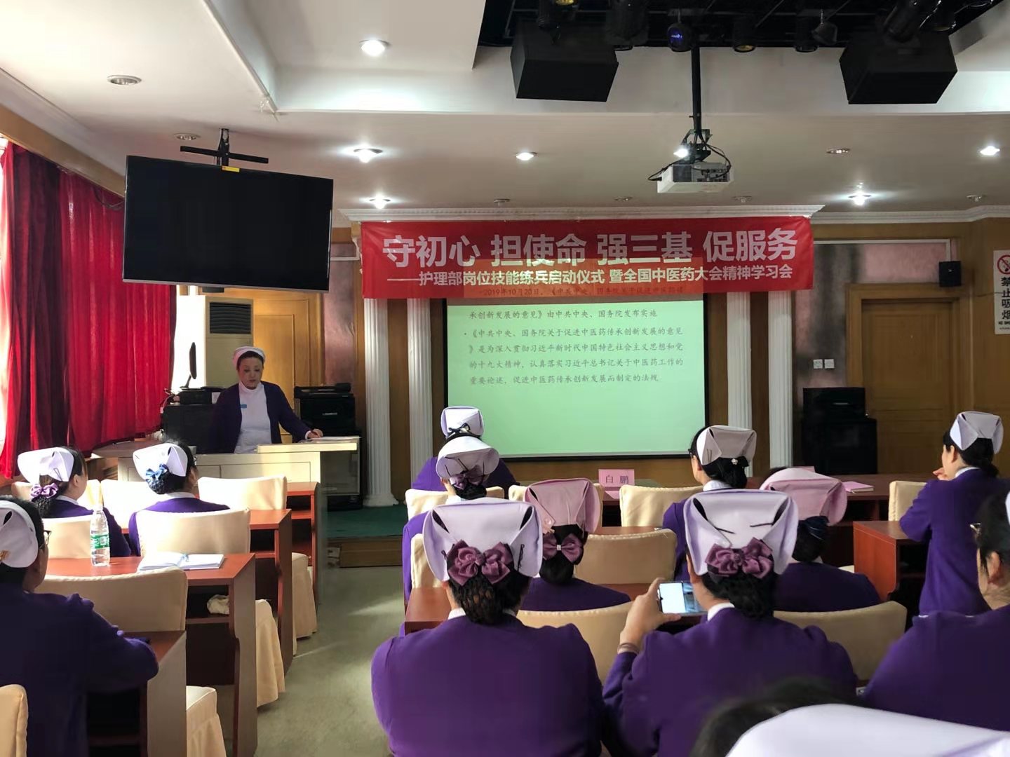 护理部举办岗位技能练兵启动仪式暨全国中医药大会精神学习会
