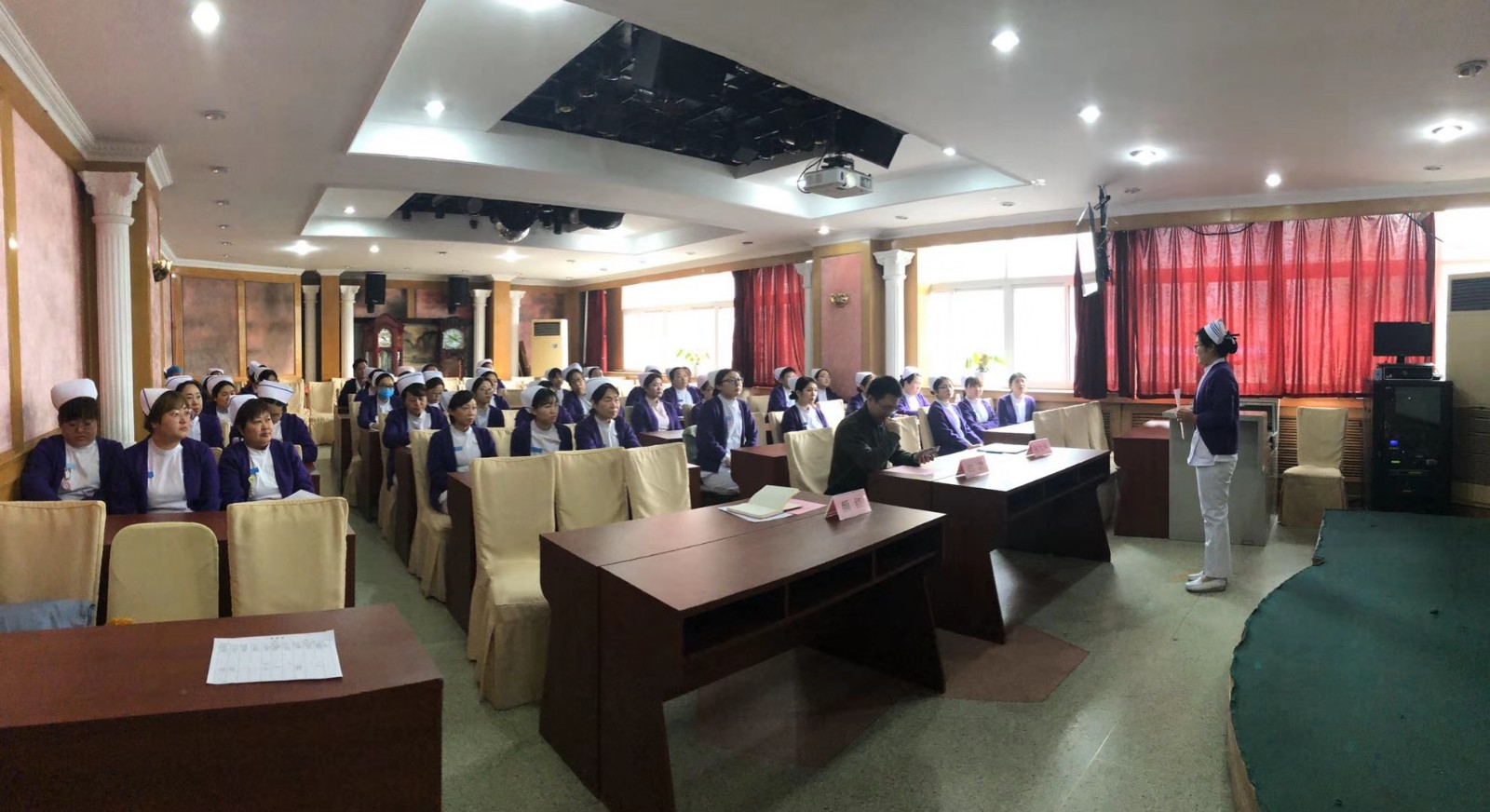 为提升护理队伍专业水平,提高护理服务质量,护理部于11月21日下午在我院多功能厅举办“守初心 担使命 强三基 促服务”护理岗位技能练兵活动启动仪式暨全国中医药大会精神学习会,全院护士长及护理骨干参会。首先,护理部张大华主任介绍此次启动仪式的意义背景,白鹏副院长莅临并发表讲话,白院长首先给与护理工作充分的肯定,组织性好、纪律性强、具有执行力的队伍,同时也指出进一步加强医疗质量和医疗安全,加强青年医护人员的基本功考核是我院的十大工作任务之一,希望在技能考核比武中,护理队伍专业水平进一步提升。白院的讲话,既肯定护理工作,又给我们指明了努力的方向,在场护理人员备受启发与鼓舞。之后张大华主任,介绍了岗位练兵的具体方案和进度,本次岗位练兵,重在强化护理的基础知识、基本技能、基本操作,从护士长做起,全员参与培训、考核,以赛促进,提高护理水平。