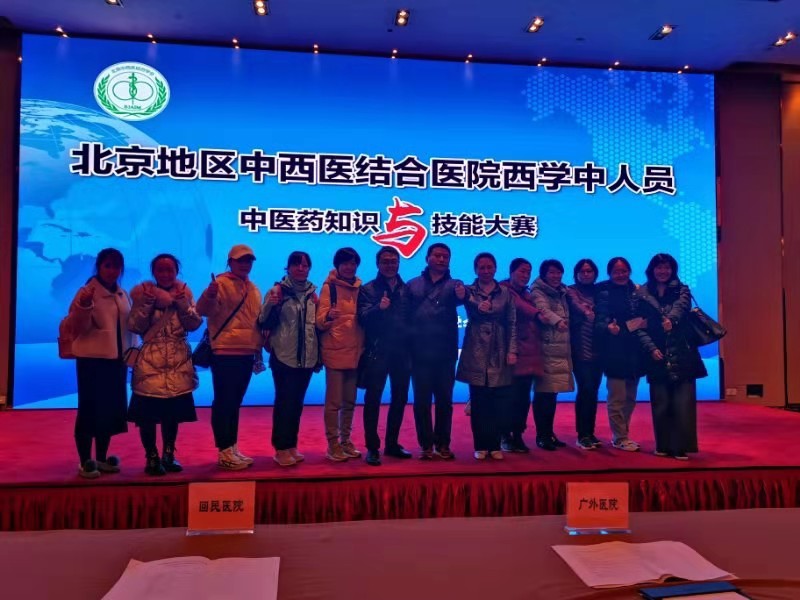 2019年12月6日上午,我院“西学中团队”参加了北京中西医结合学会举办的,北京地区中西医结合医院西学中人员中医药知识与技能大赛。在徐佳副院长的带领下,全院十多个科室的10名医生、4名护士组成本次参赛团队。在两个多月的备赛期间,医务处、护理部根据队员的需求,竭尽全力为参赛队员提供复习资料和后勤保障,而队员亦积极利用个人时间认真备战。在队员们的精心准备下,我院团队取得不俗成绩,获得优秀组织奖;郭力、高晶两名医师成绩优异,获得个人中西贯通奖,为医院增光添彩。
