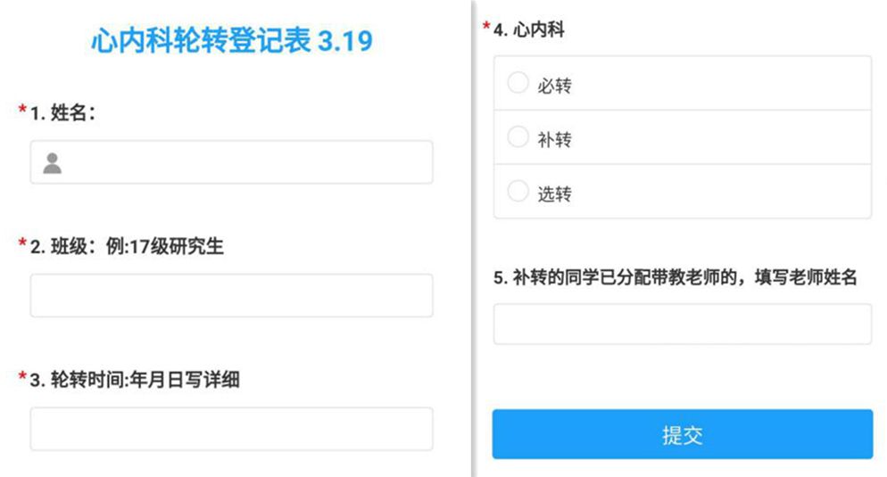 心内科轮转登记表
