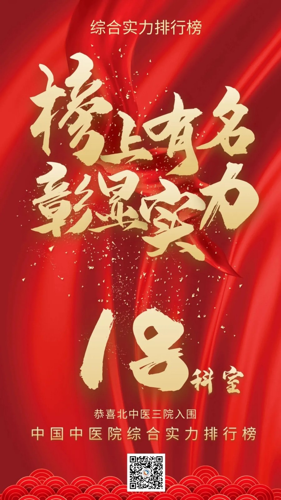 最新《中国中医院综合实力排行榜》公布:北中医三院18个科室榜上有名!