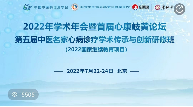 2022年7月22日-24日,由我院李平教授任会长的中国中医药信息学会心脏康养分会2022年学术年会暨首届心康岐黄论坛以及申办的国家继续教育项目“第五届中医名家心病学术传承与创新研修班”顺利召开。本次会议论坛与研修班由北京中医药大学第三附属医院与中国中医药信息学会心脏康养分会联合举办,北京康仁堂药业有限公司协办,采用线上线下相结合的形式,我院院长王成祥教授、中国中医药信息学会朱佳卿副会长分别在会议论坛上致辞,中国工程院院士王永炎院士作为特邀嘉宾做了“诠释神·神气·心灵美育与健康”的精彩演讲。北京市药品审评检查中心专家申琳、李平会长、副会长山东中医药大学附属医院副院长薛一涛、浙江中医药大学附属第一医院副院长黄抒伟、辽宁中医药大学附属医院宫丽鸿主任、河北省沧州中西医结合医院王植荣主任等专家作学术报告。