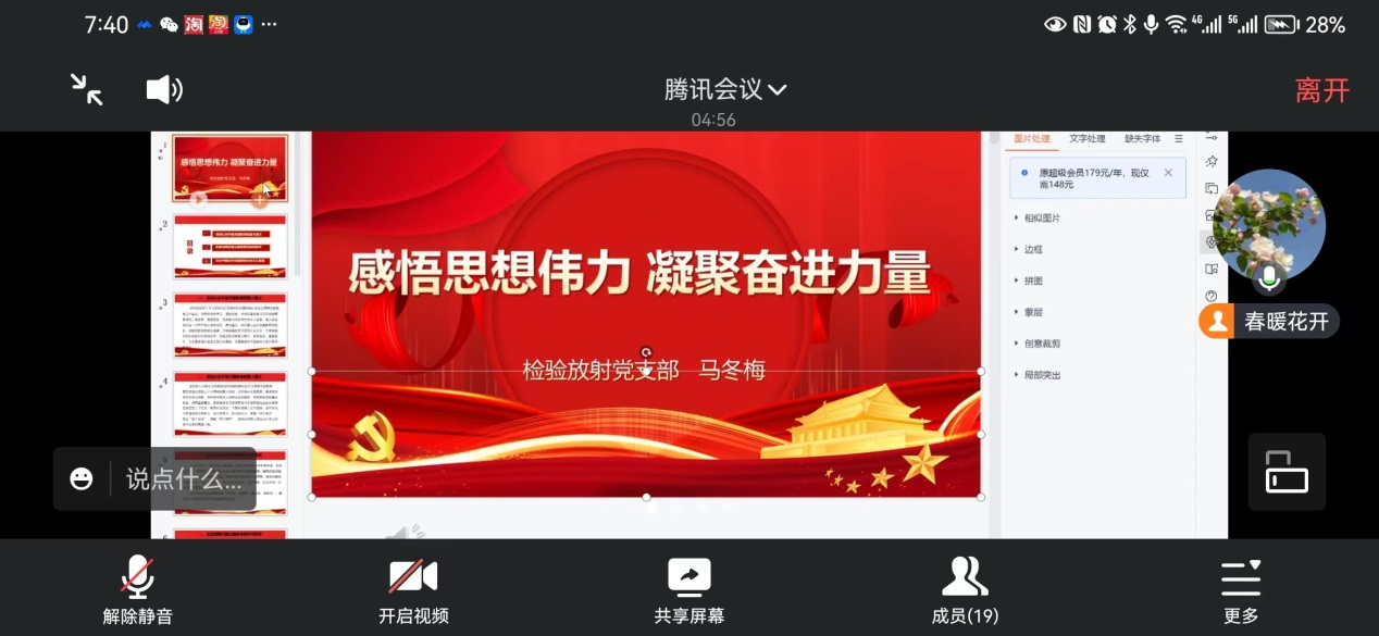 党课以腾讯会议的形式,由马冬梅书记为大家授课,本次课程从“深刻认识开展主题教育的重大意义,全面准确把握主题教育的目标要求,习近平新时代中国特色社会主义思想”三个方面展开。书记从二十大,党中央的决定开始向党员同志们强调了开展主题教育的重大意义,开展学习贯彻习近平新时代中国特色社会主义思想主题教育,坚持不懈用习近平新时代中国特色社会主义思想凝心铸魂,切实加强党的思想建设,对于推动全党更加深刻领悟“两个确立”的决定性意义,更加自觉增强“四个意识”、坚定“四个自信”、做到“两个维护”,始终在思想上政治上行动上同以习近平同志为核心的党中央保持高度一致,具有十分重大的意义。