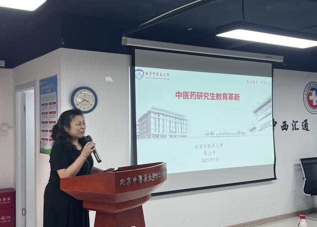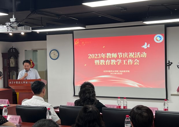 9月8日下午,我院2023年教育教学工作暨庆祝第39个教师节大会,在渔阳置业大厦B606会议室隆重召开。北京中医药大学研究生院张立平院长、闫永红处长、中医学院郭健教授以及全体院领导莅临本次会议,各教研室主任、临床科室主任及秘书、壮苗班学员以及教育处全体人员参会,教育处赵永烈处长主持会议。