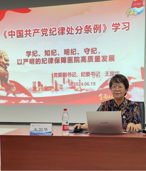 为持续推动党纪学习教育走深走实,按照《中共北京中医药大学第三附属医院委员会关于印发在全院深入开展党纪学习教育实施方案的通知》要求,6月19日下午,机关二党支部组织全体党员在B606会议室开展党纪学习教育专题党课学习,医院党委副书记、纪委书记王国华同志作题为《学纪、知纪、明纪、守纪,以严明的纪律保障医院高质量发展》的党纪学习教育专题授课,支部书记华静作题为《重温中央八项规定,扎实推进作风建设》的党纪学习专题授课。