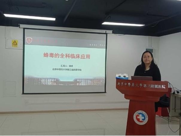 会议伊始,首先由北京中医药大学第三附属医院的徐峰教授以及社区卫生服务中心王健医师为大家进行中医全科医学发展概述及蜂毒疗法全科临床应用的授课。徐峰教授强调了中医全科医学的重要性,并从多个维度深入探讨了其定义、基本原则、特点以及与现代医学的融合。王建医师则进行了蜂毒疗法的历史沿革、现代临床应用、团队研究成果以及在基层应用的优势。