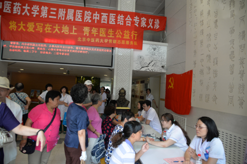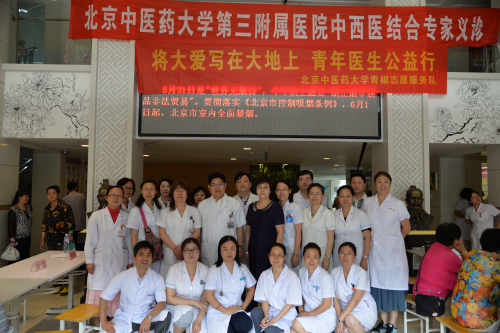 为促进城乡医院医疗技术交流,发挥我院三级甲等医院“中医药下基层”帮扶能力,提高门头沟中医院专科建设水平,2015年7月10日,由徐峰副院长带队,我院社会工作部联合团委开展对口支援门头沟中医院中医妇科专科成立仪式及义诊活动。